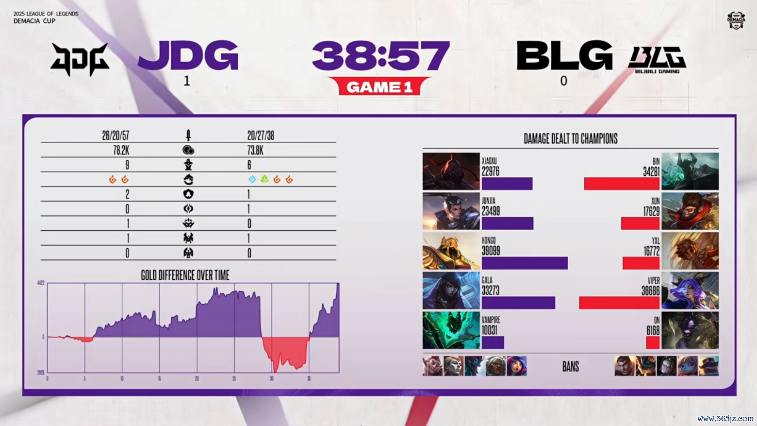 德玛西亚杯小组赛第二赛段BLG和JDG的BO3,两边大战2局之后,JDG以2-0的战绩横扫BLG,拿下得胜。BLG则是继上一场爆冷败给OMG后,又输给JDG,苦吞第二败!
